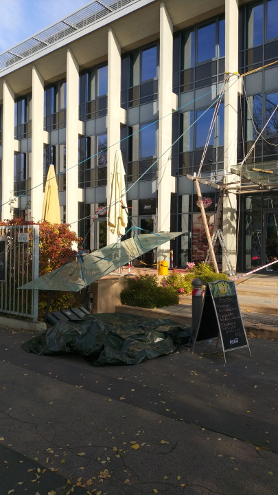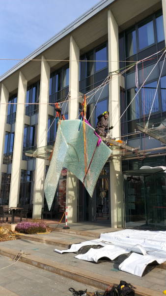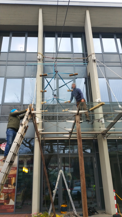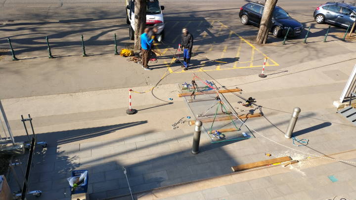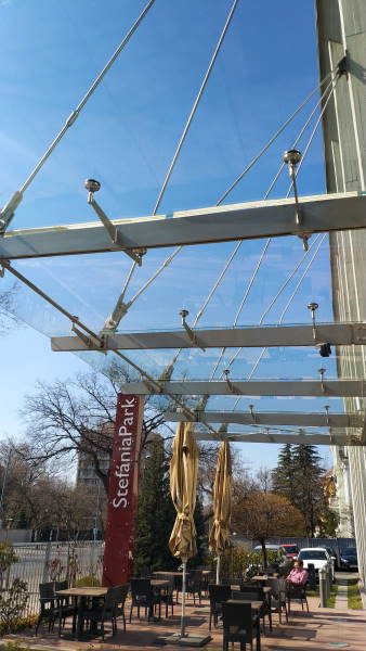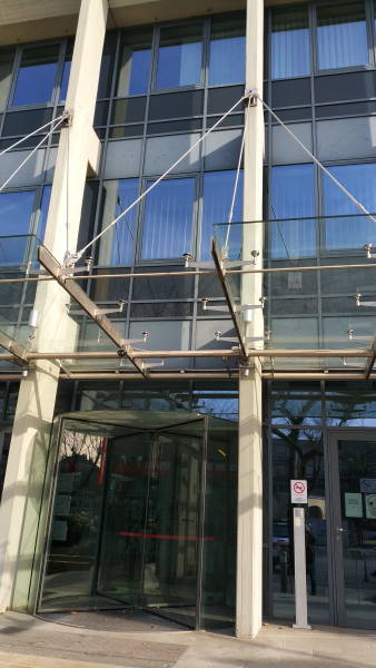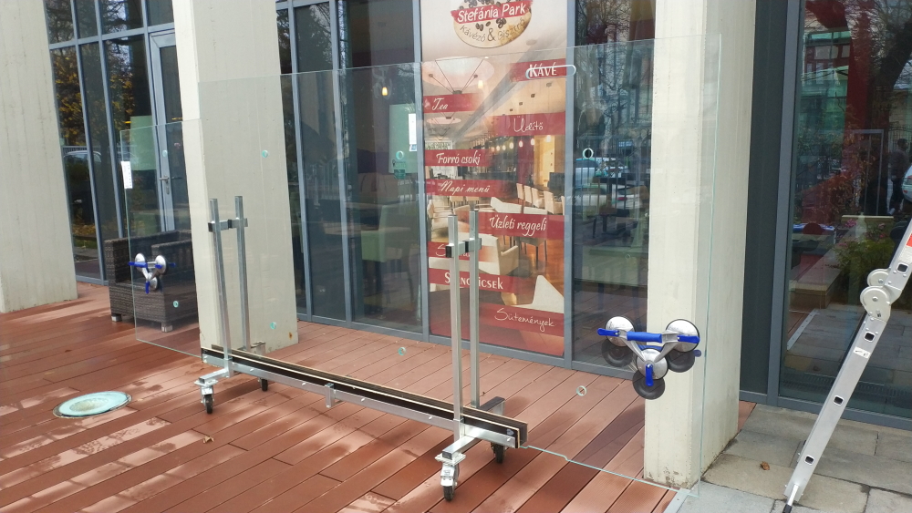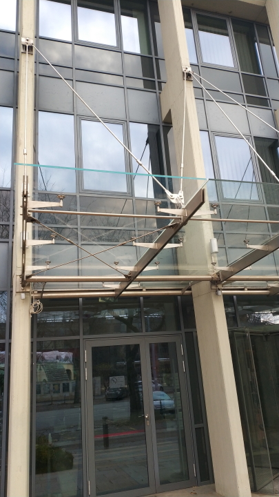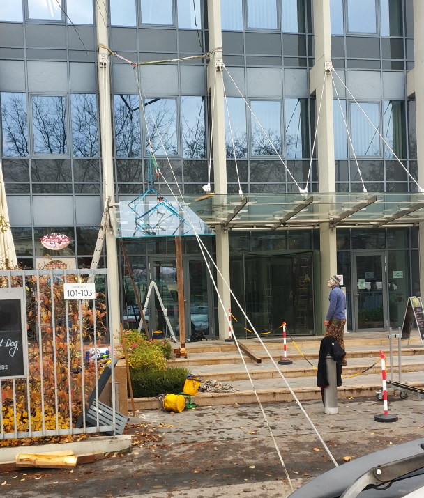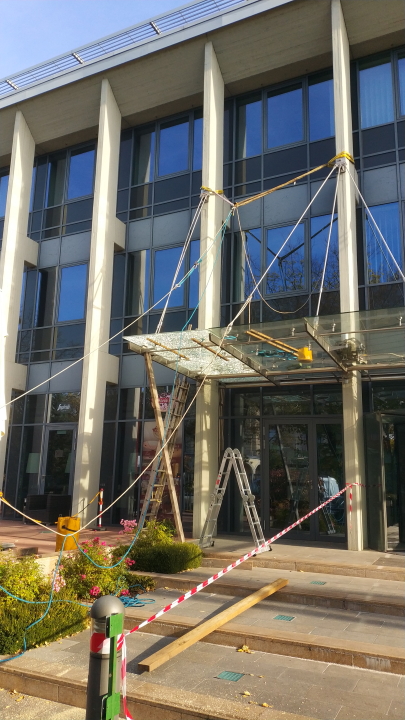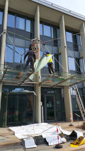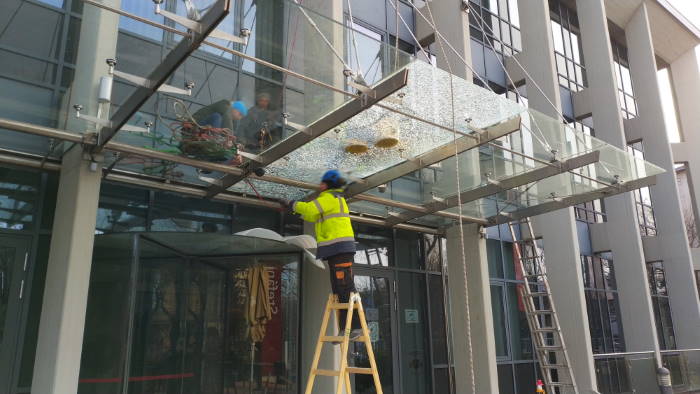Stefánia Park Irodaház bejárati üvegtető üvegcsere 2 alkalommal alpin technikával.
